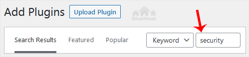4. The available plugins matching the keyword Security will appear. Click on Install Now, next to the plugin's name.