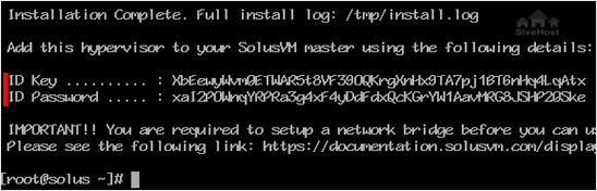 Step 3: Once it completes, it will show you the Slave keys and further instructions for your virtualization type. You can now use these keys to add a node to your SolusVM Master panel. You will need to have a SolusVM Slave license for each node.