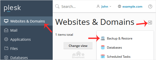 1. Go to Websites & Domains > Click on the Pull icon > Choose Backup & Restore.