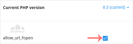 4. For enabling allow_url_fopen, checkmark it. For disabling it, uncheck it.