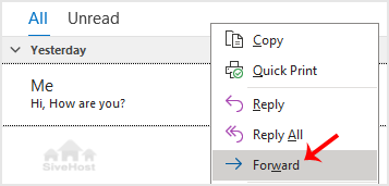 2. Go to Inbox, right-click on the message you want to forward and click on Forward.
